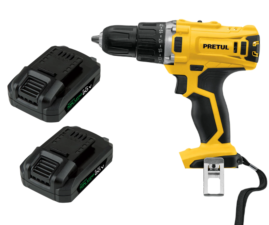 Potente equipo de 20 v con broquero de 1/2 pulgada y clip metálico para colgarse